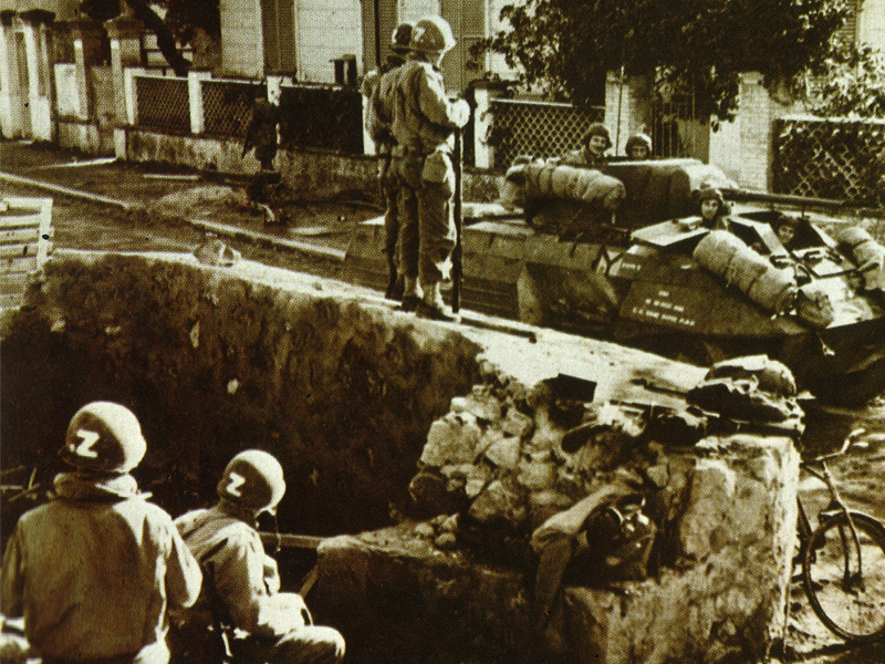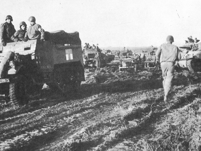 An American armored car moves through Anzio